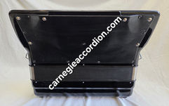 This stunning Bugari 240 Championfisa has 41 treble keys measuring in at a 19-5/16" keyboard, 120 bass buttons, 4 sets of hand-finished treble reeds LMMM (low, middle, middle, middle) with a light swing/American musette tuning, 5 sets of hand-finished bass reeds,11 treble switches plus a palm master switch, 7 bass switches, fully functional factory installed Musictech mono mic system with Sennheiser capsules, 3+1 L/R volume controls, new battery, as well as shoulder straps, chest pad, bass strap, and Bugari hard-shell carrying case all in great condition. The accordion weighs approximately 24.5 lbs. and as mentioned, has unbelievable compression. Some extras include the original Owner's Certificate, a Bugari catalog, Bugari dust cloth, and Bugari tote bag.